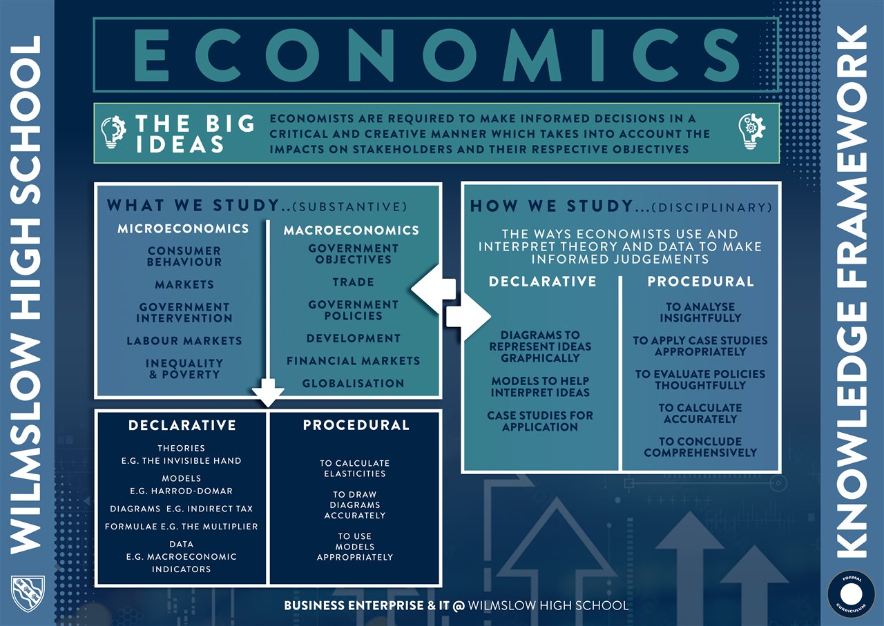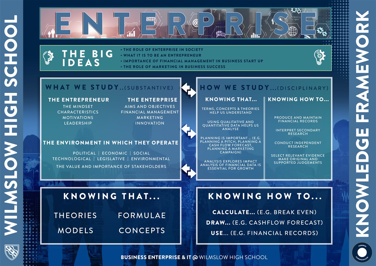 We develop students’ understanding by using a wide range of recent case studies, extracts of financial accounts, relevant business news items and practical research tasks. We also focus on the softer skills such as leadership and communication skills which are integral to the success of modern life. We provide students with opportunities both within and outside of the classroom to develop their leadership skills. For example, through the popular Manchester Airport Dragons’ Den competition. We aim for all students to develop business acumen, financial awareness, economical understanding and digital literacy. Business Economics or Enterprise will achieve this whilst promoting and integrating ethics, values and cultural awareness.
